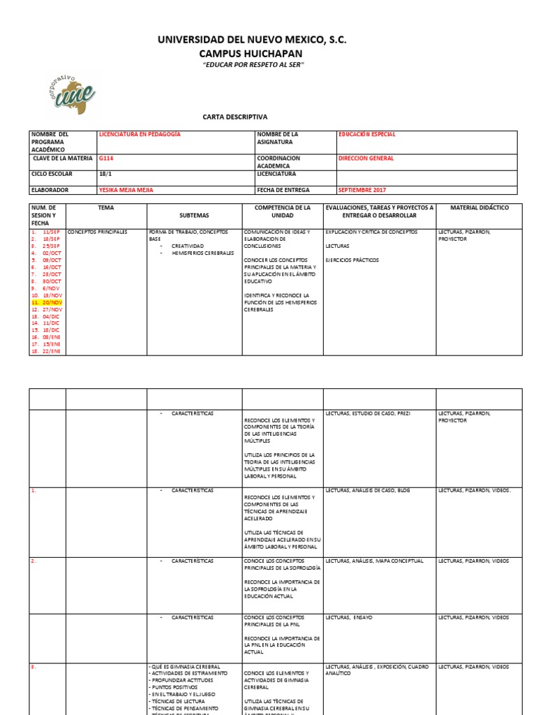 Asignatura codigo prerequisito horas creditos area. ¿que es una carta descriptiva?. El punto de partida para elaborar una carta descriptiva es el programa del curso aprobado oficialmente por la institucin y las autoridades. Es preciso tomar uno de los componentes para cada asignatura. Curso formación de instructores carta descriptiva o plan de acción. Una carta es un medio de comunicación escrita por un emisor (remitente) y enviado a un receptor (destinatario). La carta descriptiva es un documento que se utiliza para describir los contenidos ofrecidos en un curso y que facilita la observación y el orden de los diferentes procesos de planificación y del desarrollo de las actividades docentes implicadas. Las cartas descriptivas son una gua para orientar los cursos de una manera planeada, aunque flexible, hacia un rumbo determinado y con un mtodo definido. Elaboración propia basada en el estándar de competencia ec0217 (amecap, 2012). La facilitadora expondrá con el auxilio de la presentación en power point, qué es lo que debe contener el informe narrativo (parcial y total) de su proyecto, que deben entregar al infodf en las fechas establecidas en el convenio firmado. Su función es orientar y guiar las actividades de esta área se divide en cinco niveles que también van de lo sencillo a lo complejo por niveles de dominio. Generalmente se usa un lenguaje coloquial que ambos. 2 respetado docente, esta es la carta descriptiva, el primer paso consiste en información general, debes llenar atentamente los espacios que aquí aparecen en color azul y rojo, colores que indican claramente las pautas a seguir.